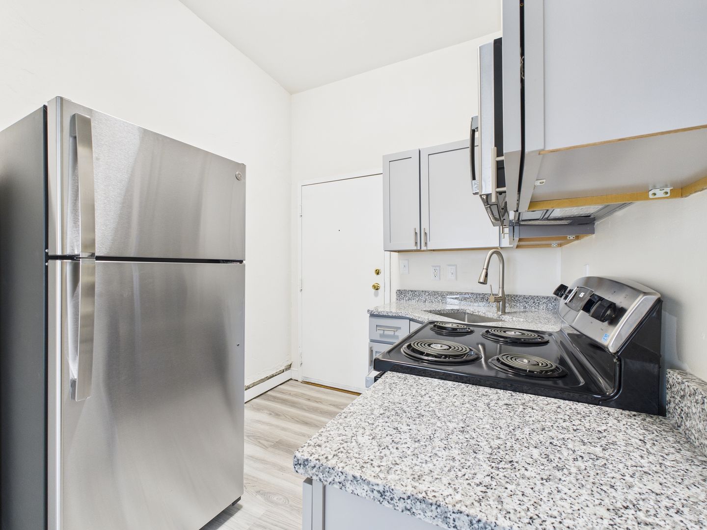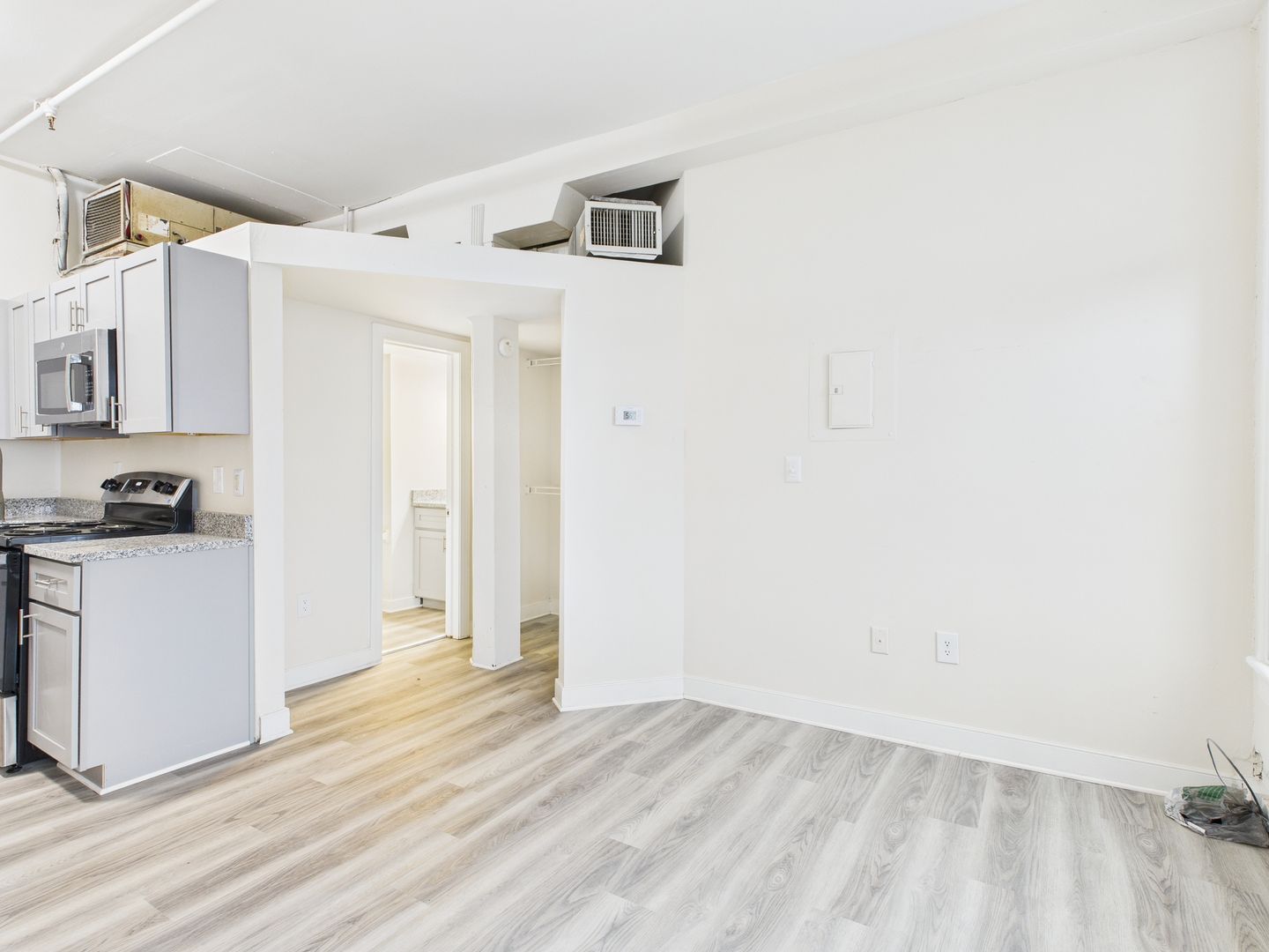 Welcome to your recently upgraded studio apartment, where comfort meets convenience. This thoughtfully designed space features a modern walk-in shower with elegant marble-style tile, perfect for refreshing after a long day. The unit has been freshly painted and upgraded with sleek stainless-steel appliances, making it move-in ready and effortlessly stylish.