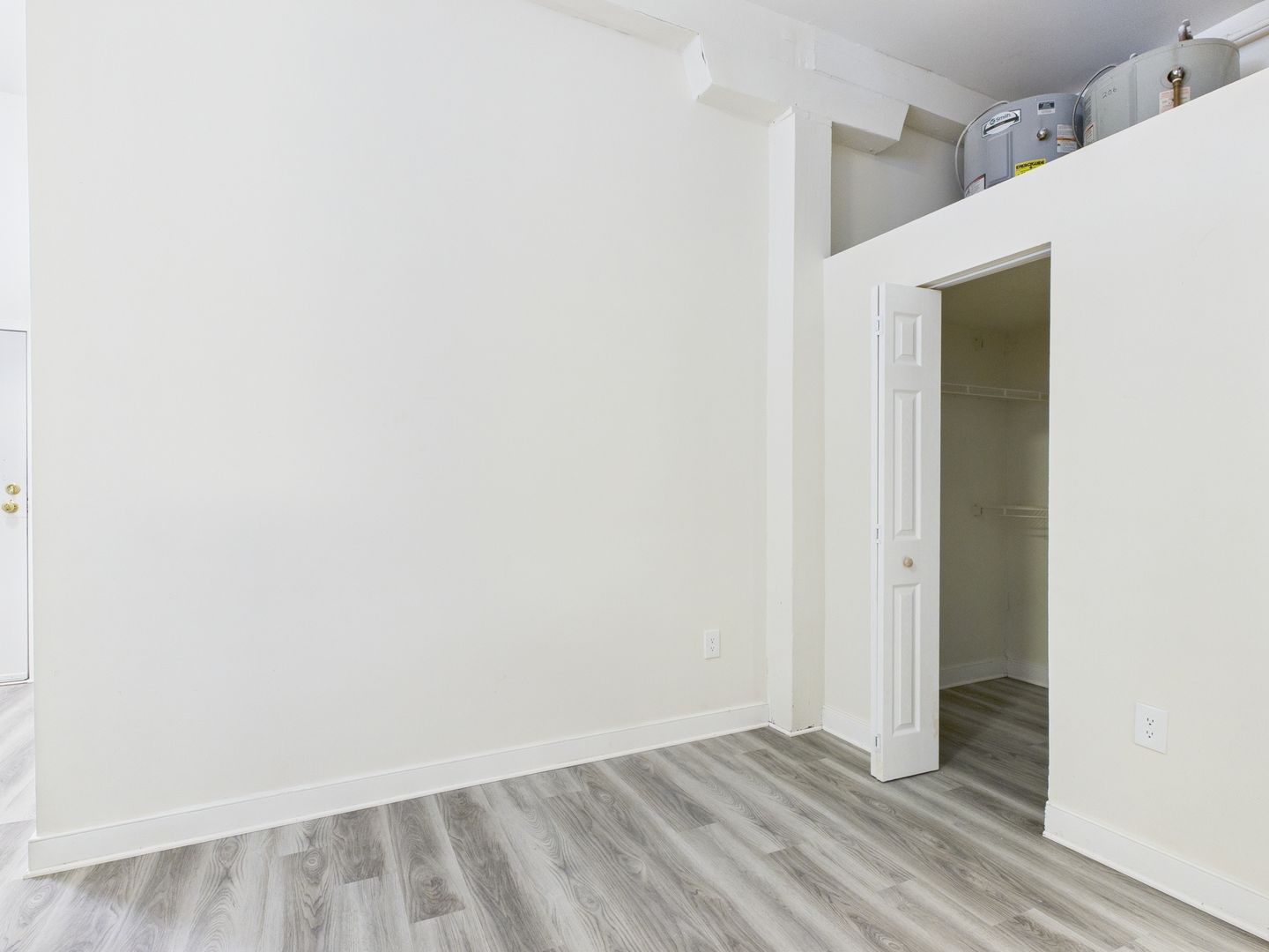This unit has just been renovated from top to bottom. Enjoy a brand-new bathroom and a refreshed kitchen featuring new appliances (stove, fridge, and microwave). The layout is efficient and comfortable, featuring a separate bedroom with a walk-in closet.